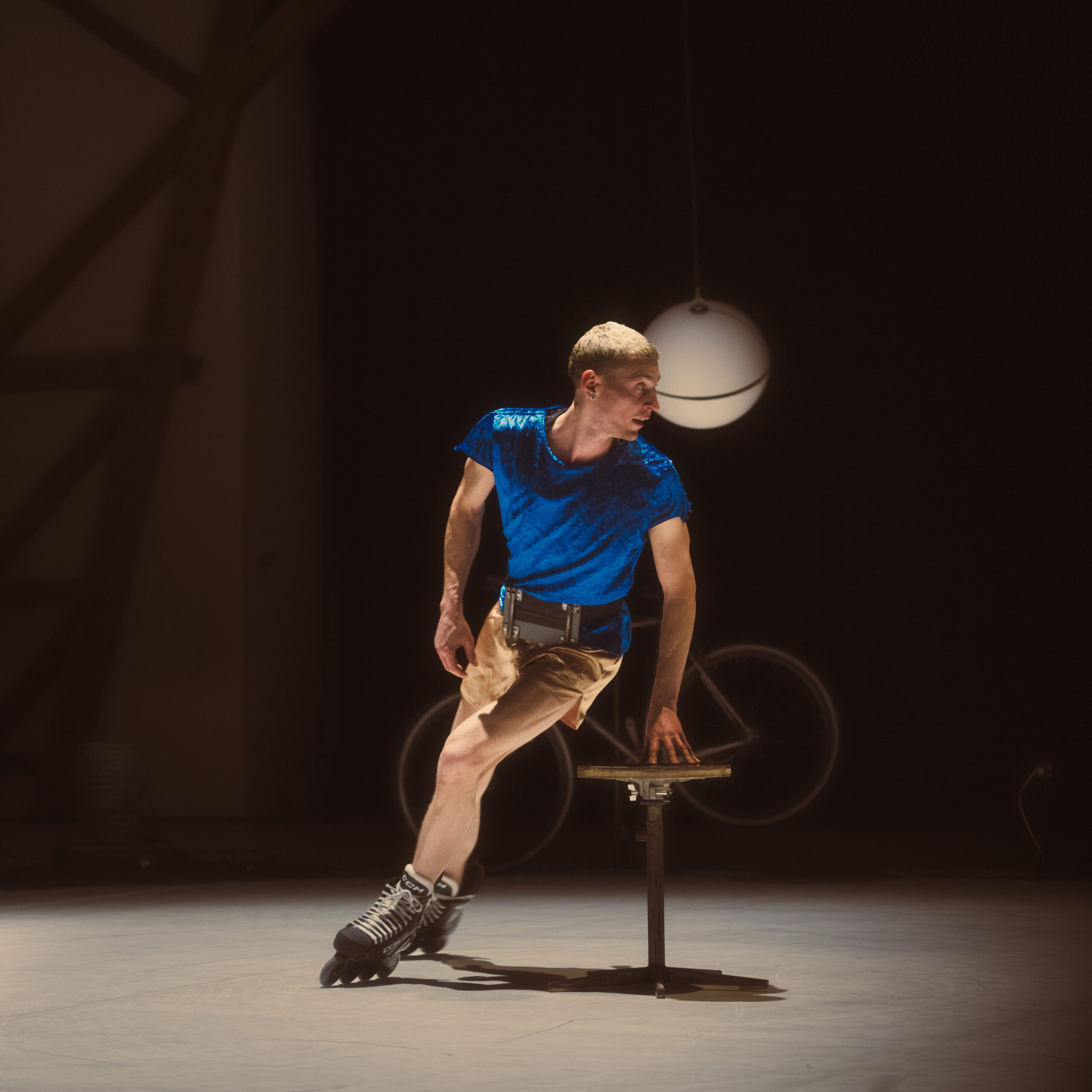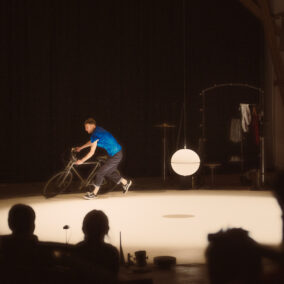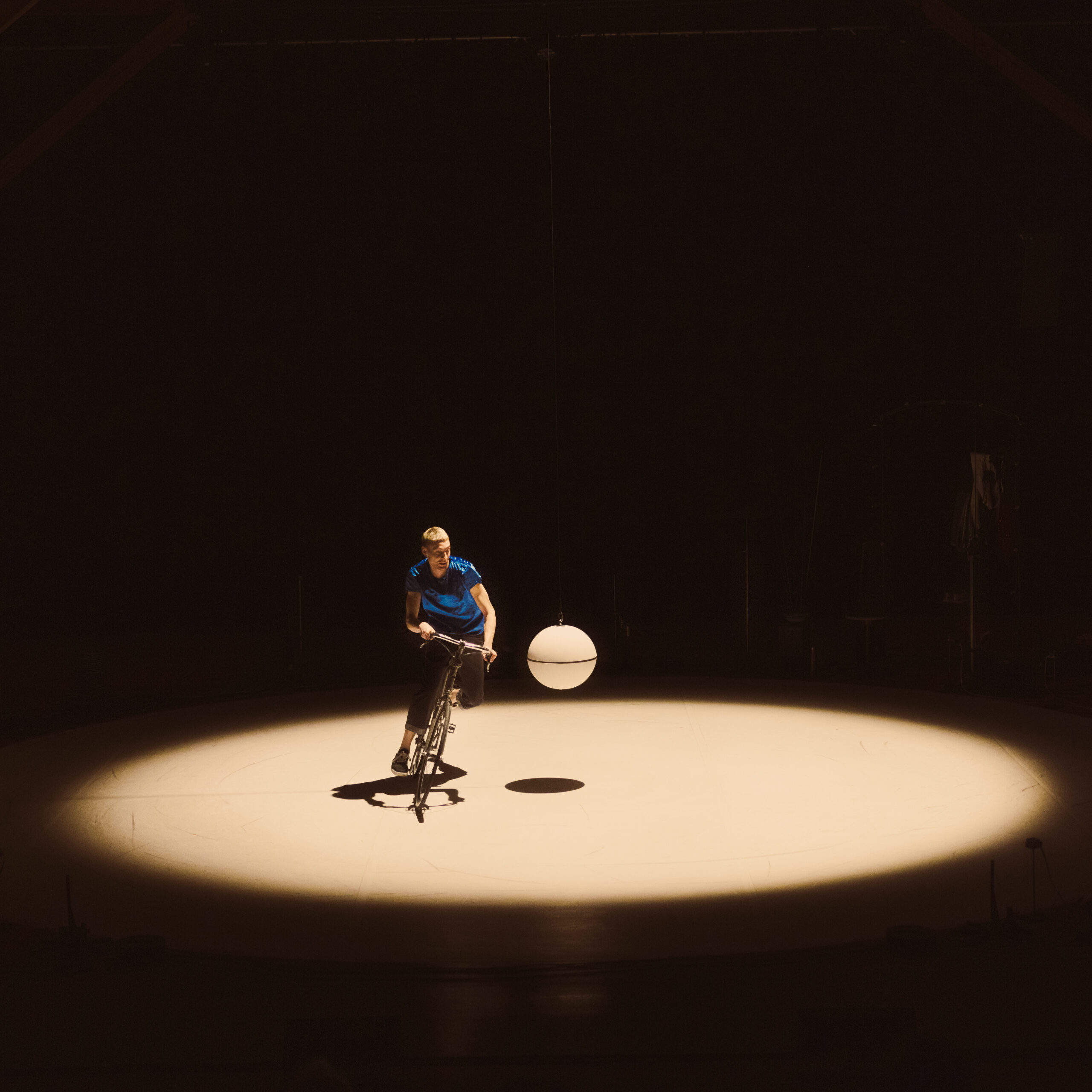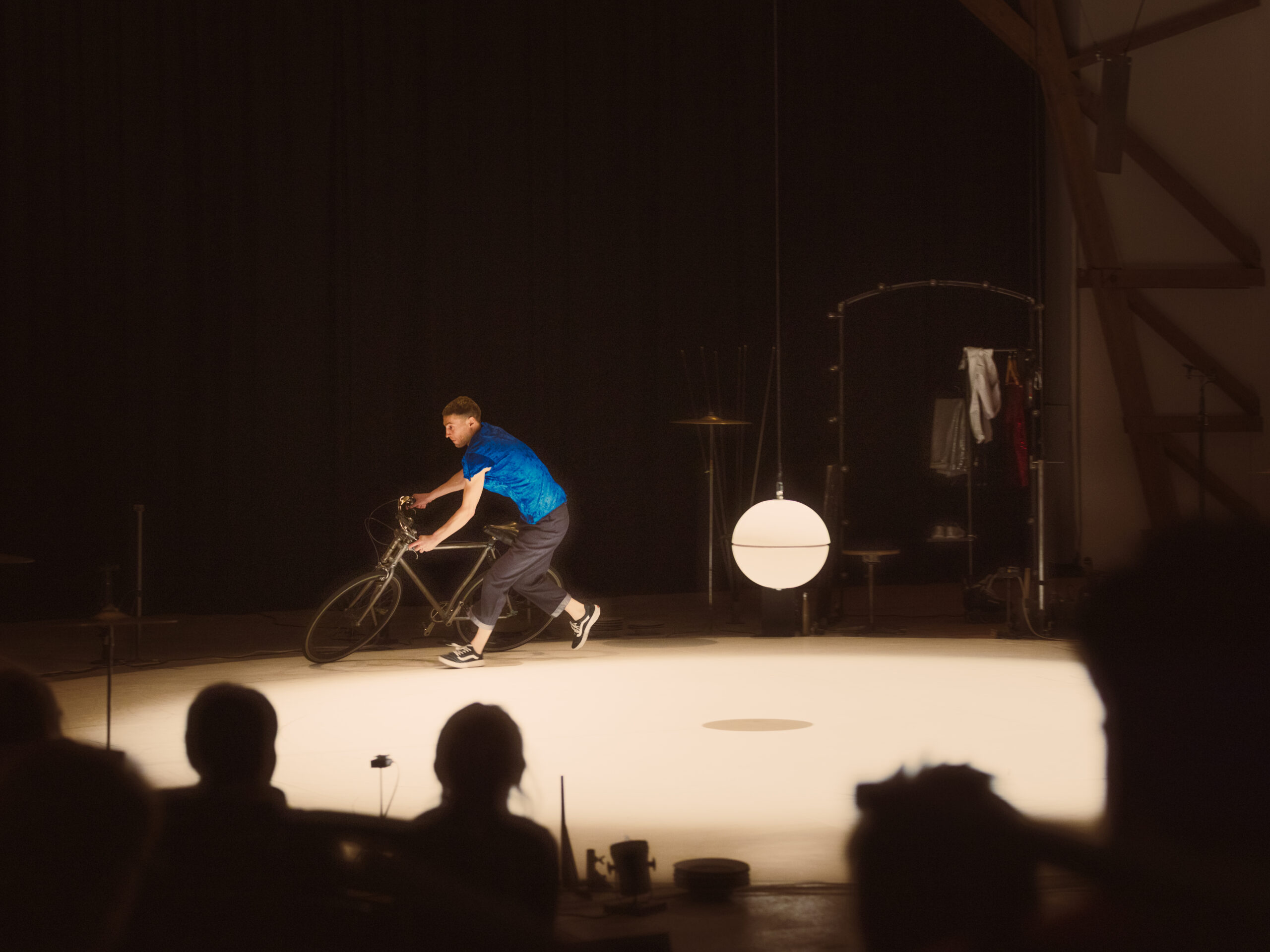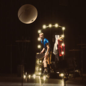Tel un homme-orchestre virtuose, Julian Vogel joue avec les ressorts du cirque traditionnel comme les numéros d’assiettes chinoises, le vélo désarticulé ou encore les roulements de tambour. Une logique de l’incertitude, de l’aléa et du hasard génère un joyeux suspense. Mouvements de balanciers, trajectoires circulaires, effets yoyo, oscillations et disparitions : nos attentes et nos perceptions sont mises à l’épreuve avec une simplicité sophistiquée et un humour qui tourne à l’absurde.
